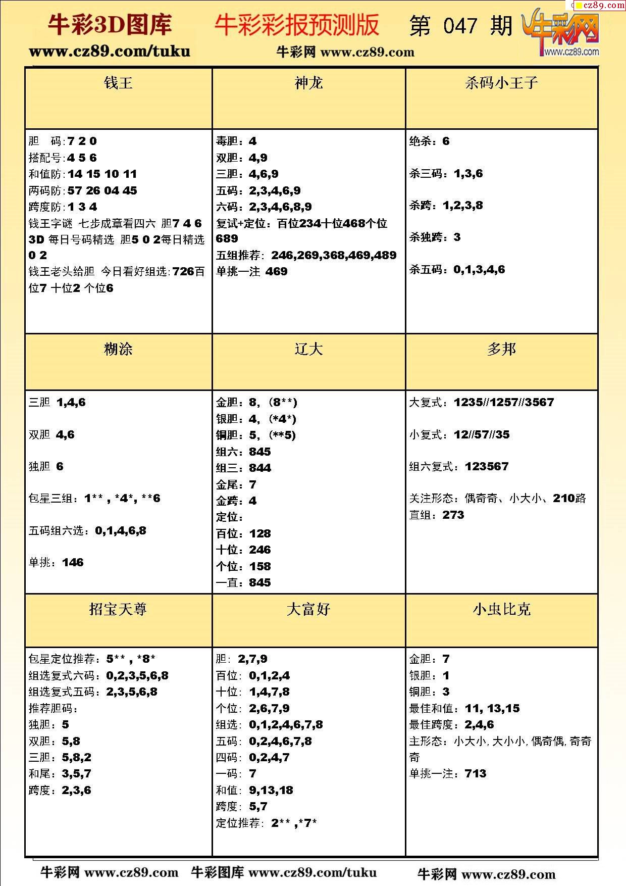 牛彩版3D预测彩报图26年047期打印版