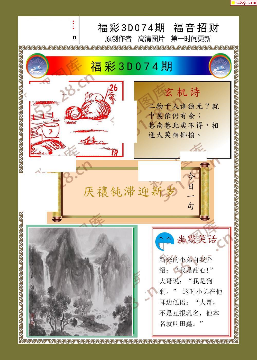 > 福音招财26年074期3d字画彩报
