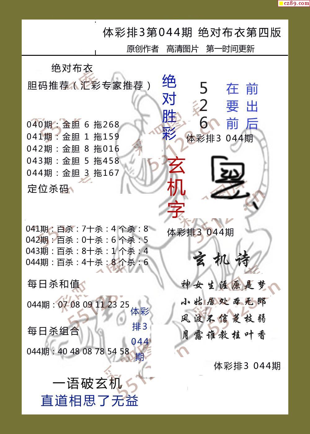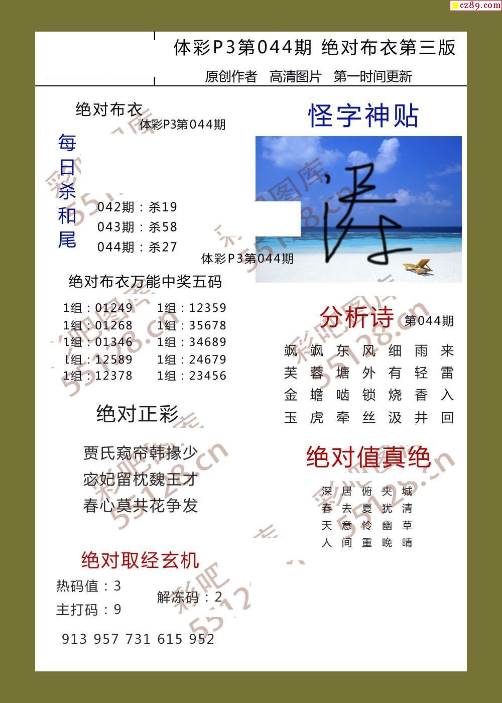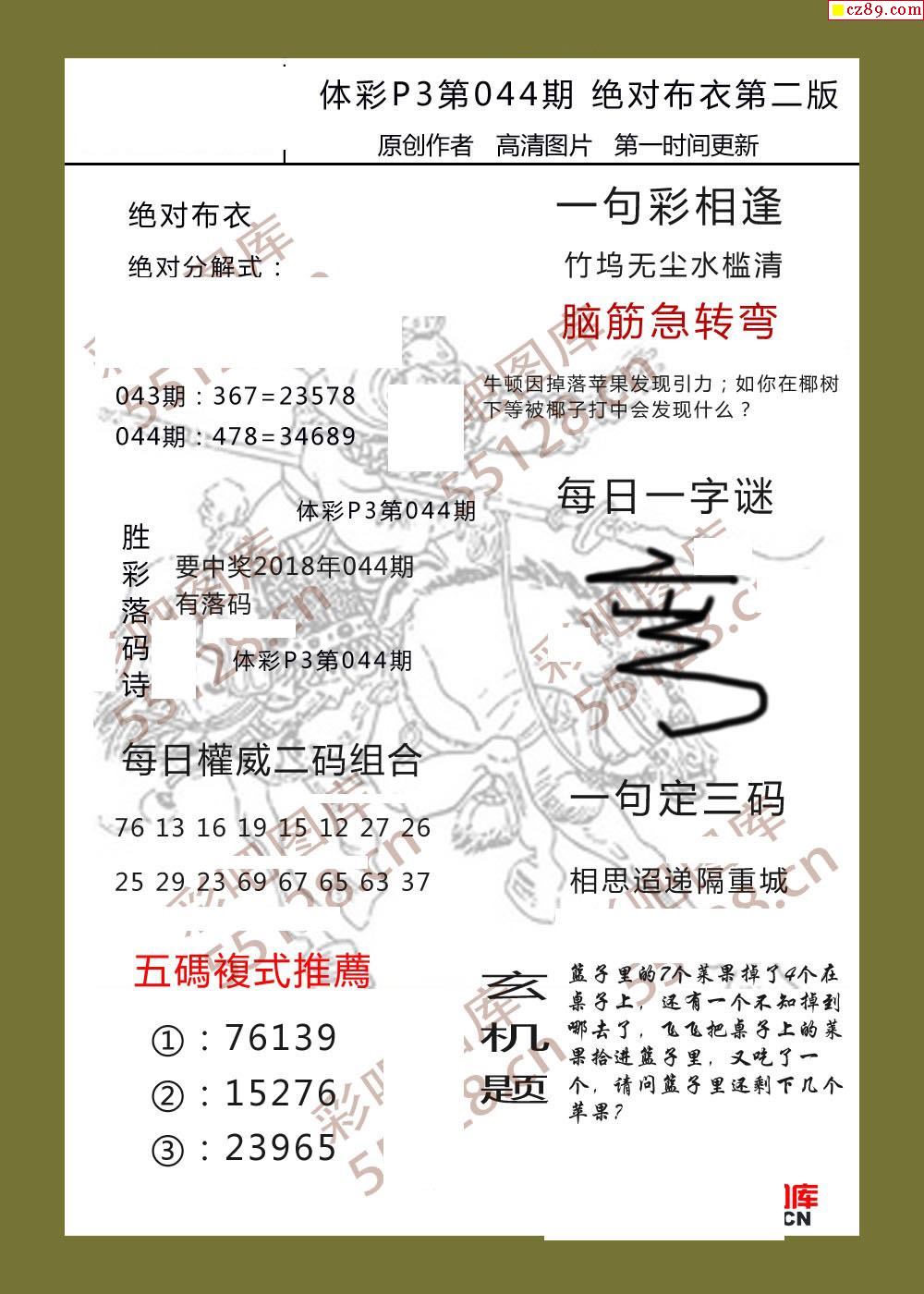 绝对布衣044期体彩p3图谜