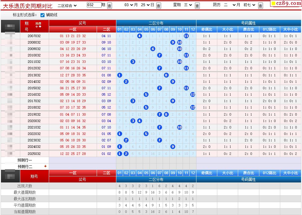 > 032期大乐透历史同期对比图